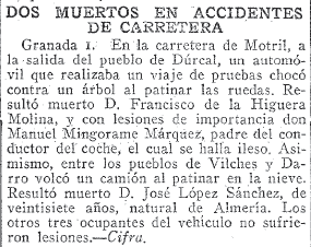 02/01/1953. Dos muertos en accidentes de carretera