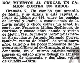 08/04/1956. Dos muertos al chocar un camión contra un árbol