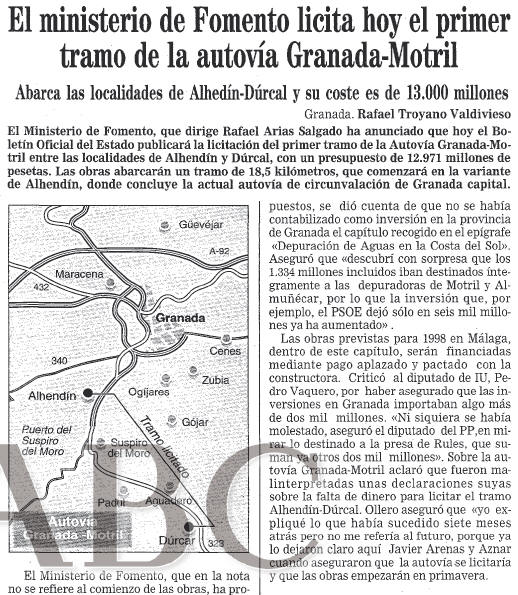 11/10/1997. Hoy se licita el tramo Alhendín-Dúrcal