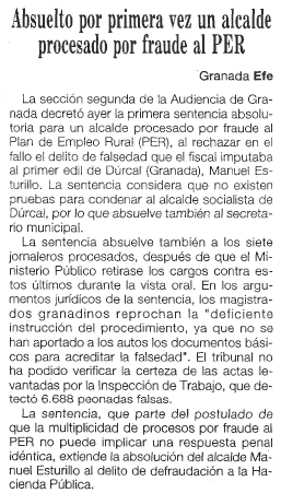 - 06/05/1994. Absuelto el alcalde por el fraude del PER