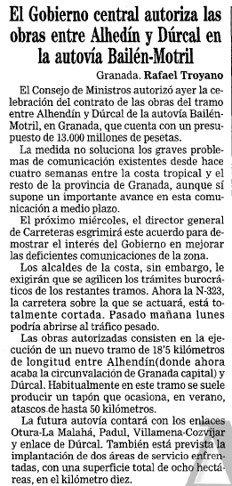 - 11/10/1997. Hoy se licita el tramo Alhendín-Dúrcal
