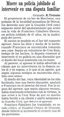 - 28/08/1998. Muere un policía jubilado al intervenir e una disputa