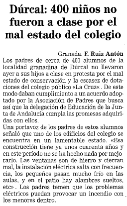 - 03/03/1999. 400 niños del colegio de la Cruz protestan por el estado del