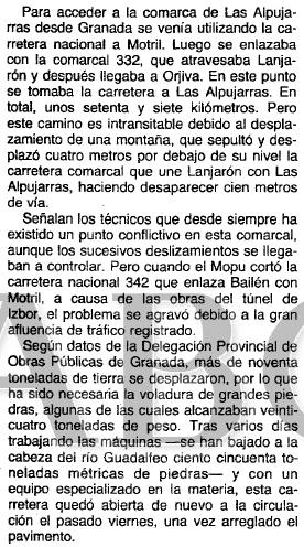 - 01/06/1990. La carretea sigue cortada desde mayo
