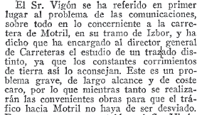 - 14/04/1964. Se estudia un trazado distinto para la carretera