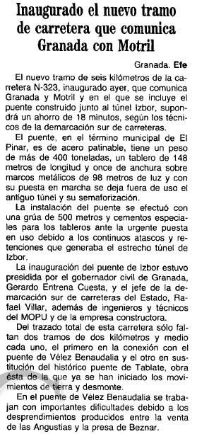 - 26/08/1990 Inaugurado el nuevo tramo de carretera que incluye un puente