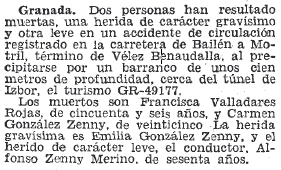 - 30/06/1968. Accidente cerca del túnel