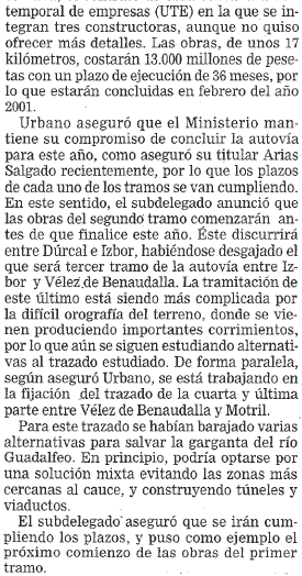 - 20/07/1999. Se adjudica el tramo Dúrcal Izbor
