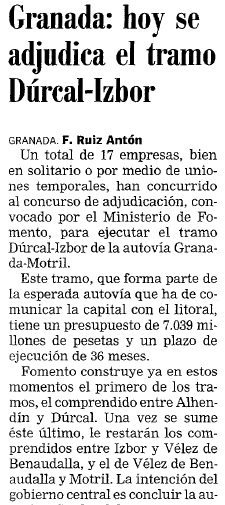 20/07/1999. Se adjudica el tramo Dúrcal Izbor