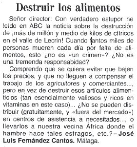 - 08/07/1993. Se destruye la naranja para mantener precios