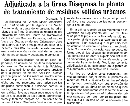 - 21/07/1993. Se crea la planta de tratamiento de residuos sólidos donde