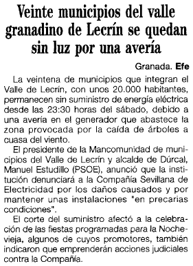 - 02/01/1995. El Valle de Lecrín sin luz en noche vieja