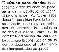 - 18/09/1995. Entrega de dinero a la Asociación de Minusválidos VALE