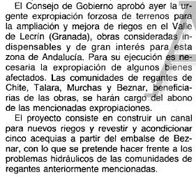- 07/04/1993. Ampliación y mejora de riegos en el Valle de Lecrín