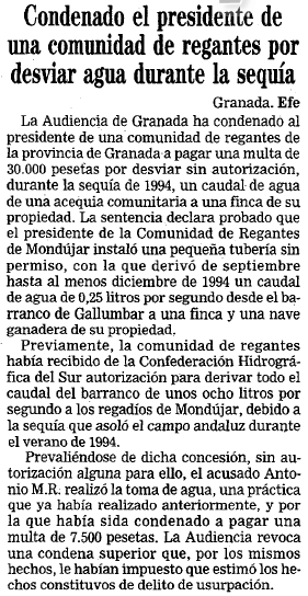 - 04/11/1997. Condenado el presidente de la comunidad de regantes