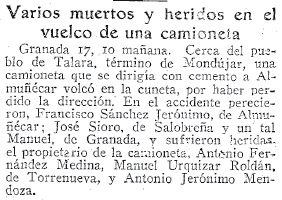 - 18/10/1933. Varios muertos y heridos en el vuelco de una camioneta