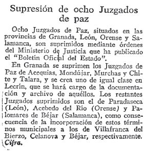 - 10/05/1968. Supresión de Juzgados de paz