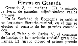 - 09/06/1931. Tercer premio para la banda de música de Nigüelas en las
