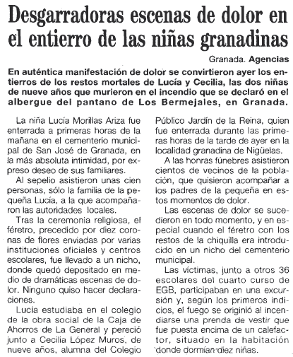 - 03/02/1995. Una de las niñas que muere en el incendio del albergue de