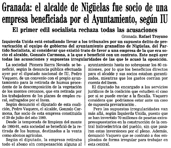 - 29/08/1998. El alcalde de Nigüelas fue socio de una empresa beneficiada