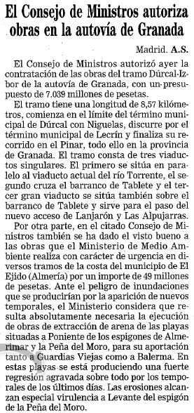 - 24/12/1998. Se autoriza el tramo de autovía Dúrcal-Ízbor