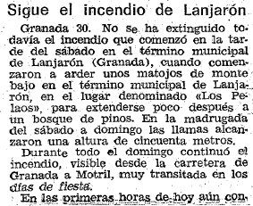 - 31/07/1973. Incendio en Tello que termina afectando a la sierra de