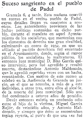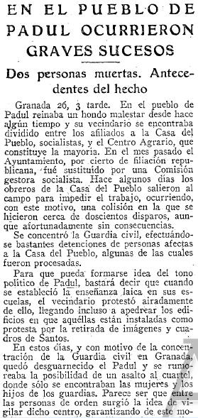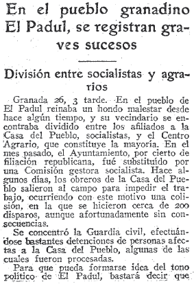 - 07/11/1935. Suceso sangriento en el Padul, por los sucesos de 1932