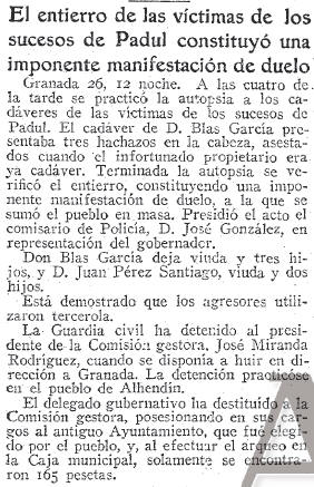 - El entierro de las víctimas de los sucesos del Padul constituyó una