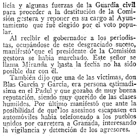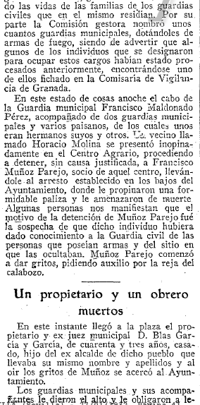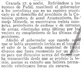 07/11/1935. Suceso sangriento en el Padul, por los sucesos de