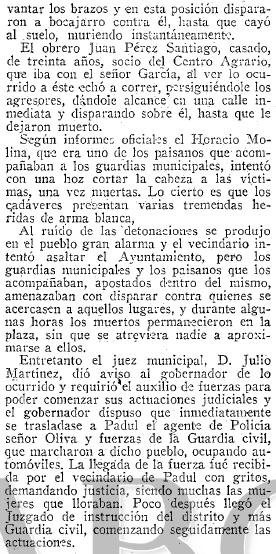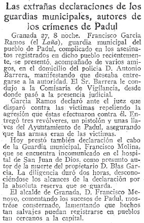 agrario. Interesantes pormenores del doble crimen social de Padul. Hallazgo