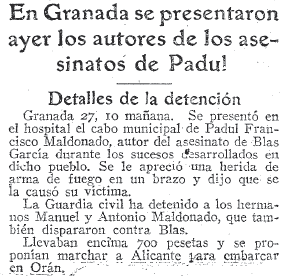 sucesos del Padul. Detalles de la detención. Las extrañas declaraciones de los