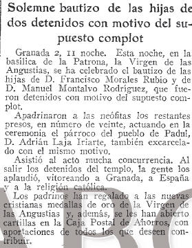 - 03/08/1933. Solemne bautizo de las hijas de dos detenidos con motivo del