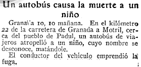 - 11/09/1935. Un autobús causa la muerte de un niño