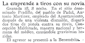- 19/07/1930 La emprende a tiros con su novia