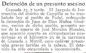 - 24/10/1930. Detenido un presunto asesino