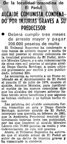 - 23/05/1982. Condenado el alcalde comunista de Padul por injurias a su