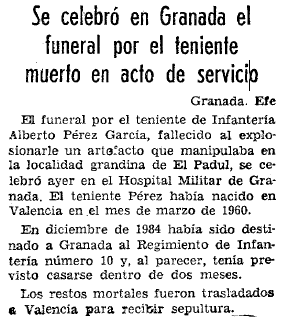 - 01/08/1985. Muere al explotarle un artefacto que manipulaba
