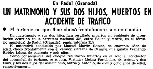 - 21/01/1981. Accidente de tráfico en Padul