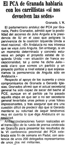 - 19/01/1988. VI conferencia provincial del PCA celebrada en Padul
