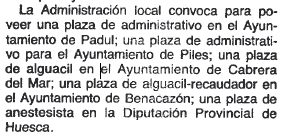 - 22/07/1986. Plaza de administrativo en el ayuntamiento