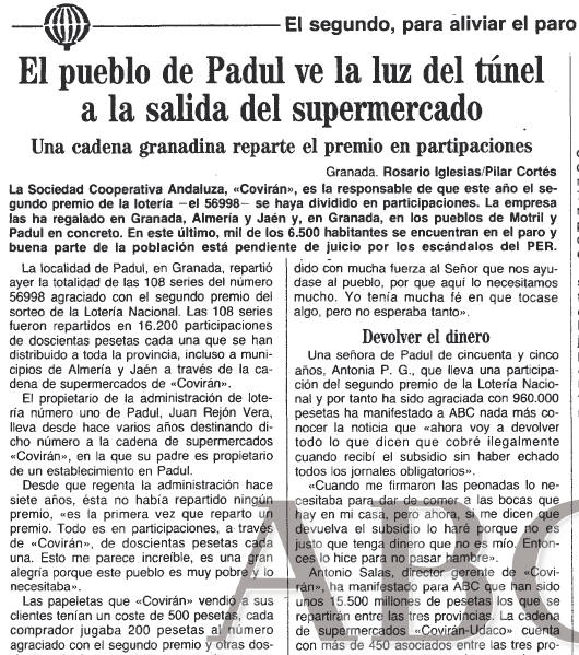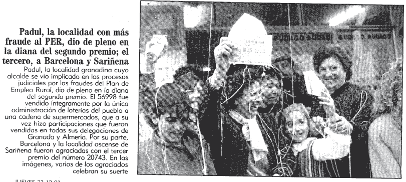 23/12/1993. Toca el segundo premio de lotería