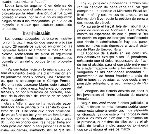 - 01/02/1994. El abogado del estado exculpa a los jornaleros y