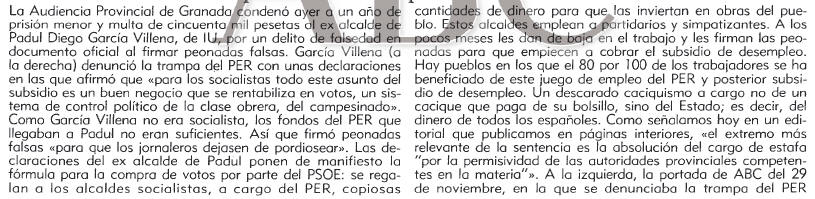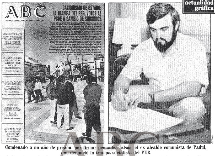 - 04/03/1994. Condenado a un año de prisión por firmar peonadas falsas