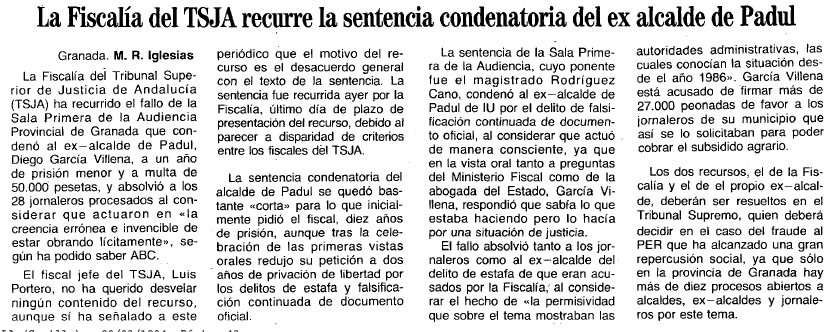 09/03/1994. La fiscalía del TSJA recurre la sentencia condenatoria
