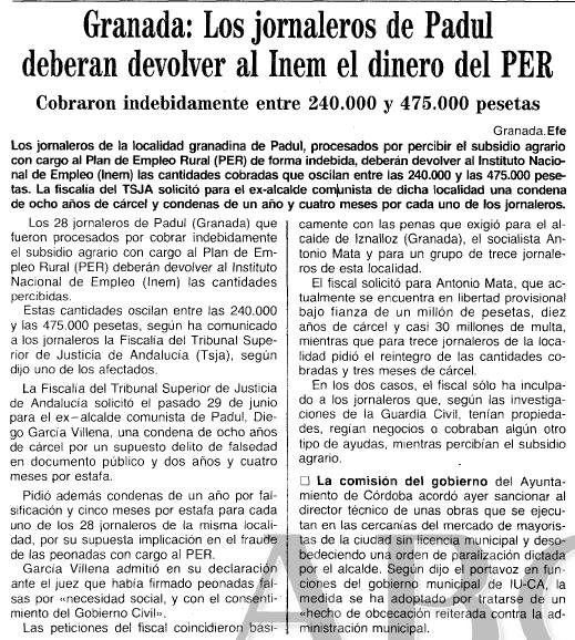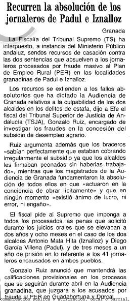- 06/04/1994. Recurren la absolución de los jornaleros de Padul