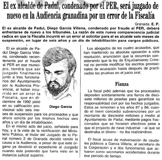 - 06/05/1994. El ex alcalde será juzgado de nuevo por error de la Fiscalía