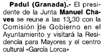 - 13/05/1994. Manuel Chaves visitará Padul