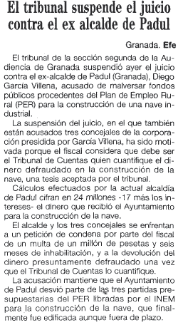 - 24/09/1994. Suspensión del juicio contra el ex alcalde
