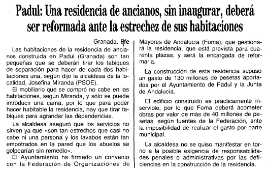 - 19/10/1992. Una residencia de ancianos sin inaugurar deberá ser