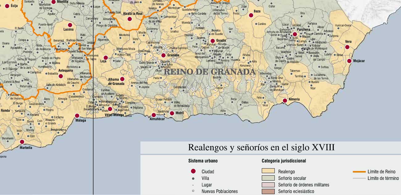 Durante el S. XVIII aún formamos parte del Reino de Granada. Algunos ilustrados como el Marqués de La Esenada se pasan por aquí y nos dejan una buena descripción de cada uno de nuestras poblaciones, al igual que los primeros mapas. Es de destacar también el buen trabajo de Tomás López al describir los diferentes caminos por los que se circulaba entonces